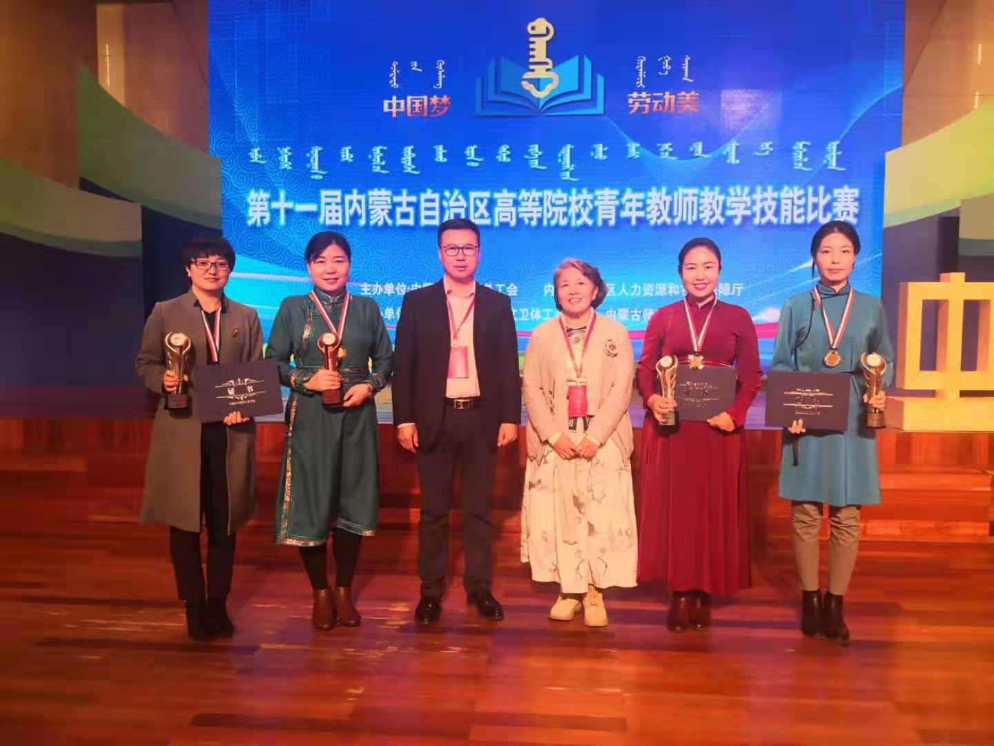 10月18——10月20日,“中國(guó)夢(mèng)·勞動(dòng)美”第十一屆內(nèi)蒙古自治區(qū)高等院校青年教師教學(xué)技能比賽在內(nèi)蒙古師范大學(xué)舉行。我校額爾敦布和教授和王桂榮教授應(yīng)邀擔(dān)任了本次大賽評(píng)委。本次大賽分蒙語(yǔ)組、文科組(含音體美)、理科組、工科組進(jìn)行現(xiàn)場(chǎng)競(jìng)技,經(jīng)過激烈角逐,我校新聞傳媒學(xué)院圖木舍、馬克思主義學(xué)院蘇雅拉榮獲蒙語(yǔ)組二等獎(jiǎng);數(shù)學(xué)與大數(shù)據(jù)學(xué)院青梅榮獲理科組二等獎(jiǎng);化學(xué)與環(huán)境學(xué)院昭日格和美術(shù)學(xué)院陳蘇麗分別榮獲工科組和文科組三等獎(jiǎng)。