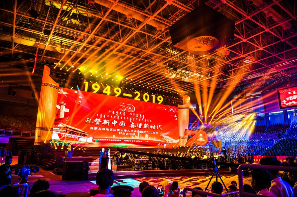 9月27日下午,“禮贊新中國 奮進新時代”內蒙古自治區慶祝中華人民共和國成立70周年群眾大合唱在呼和浩特隆重舉行。由音樂學院、外國語學院、教育學院443名同學組成的學生合唱團代表學校赴內蒙古體育館參加此次群眾大合唱。