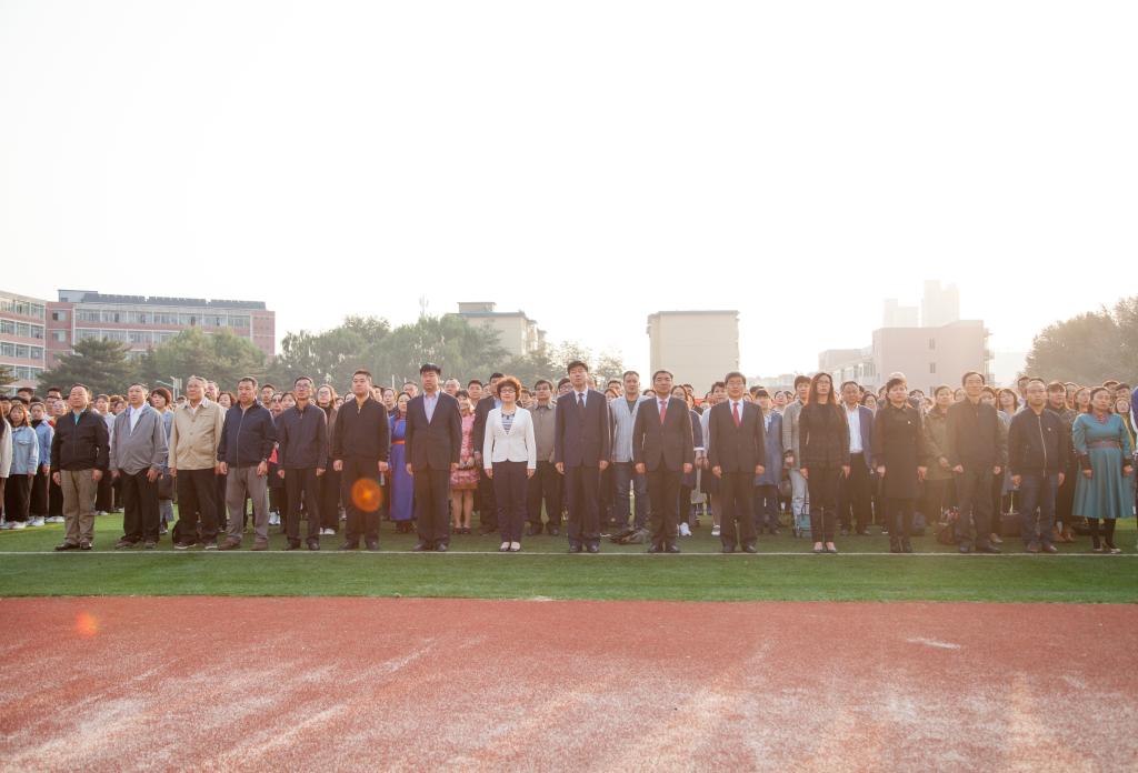 為慶祝中華人民共和國成立 70 周年,唱響禮贊新中國、奮進新時代的青春主旋律,弘揚愛國精神,我校于9月29日早在學校體育場舉行隆重的迎國慶升國旗儀式。學校黨委書記孫國權,黨委副書記、校長格日樂圖,黨委副書記胡春梅,黨委委員、副校長阿拉坦倉出席儀式,各職能部門負責人,二級學院黨總支書記、院長、團總支書記、專任教師、輔導員以及近4000名學生參加了儀式。