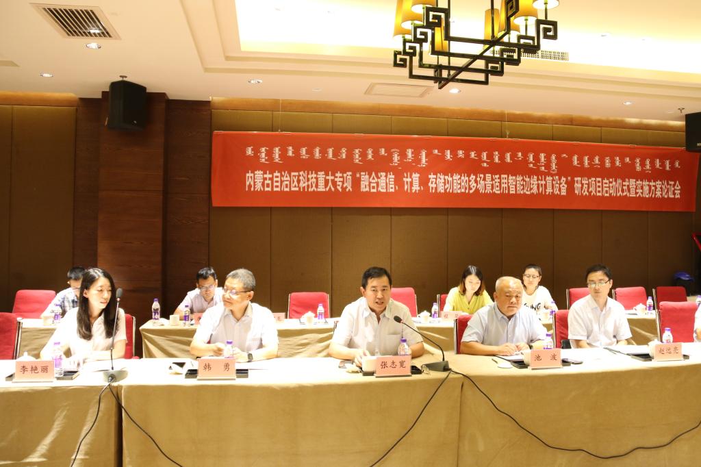 7月20日,內蒙古自治區科學技術廳主持召開了由呼和浩特民族學院計算機科學與信息工程學院牽頭承擔的2018年內蒙古自治區科技重大專項“融合通信、計算、存儲功能的多場景適用智能邊緣計算設備”研發項目啟動儀式暨實施方案論證會。自治區科技廳張志寬副廳長、政策法規與監督處韓勇處長、高新技術處趙遠亮調研員、李艷麗科員、呼和浩特民族學院阿拉坦倉副校長、內蒙古甘卓爾信息技術服務有限公司和內蒙古草原音畫科技有限責任公司的領導出席會議,來自國內外的相關領域專家以及項目組成員近50人參加了會議,會議由自治區科技廳高新技術處池波處長主持。