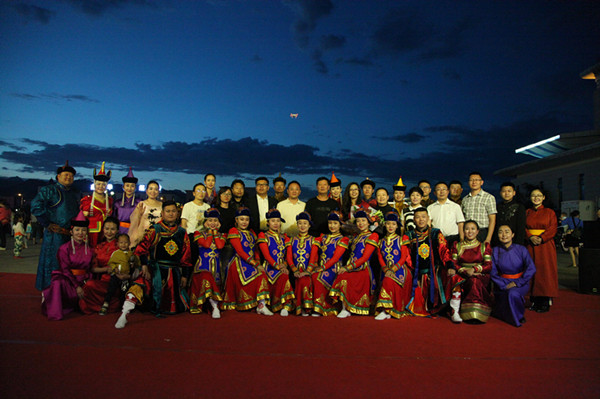 我校烏蘭牧騎隊員與烏拉特后旗烏蘭牧騎合影