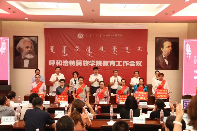 隨后,納麗娜副校長和賀希格吉雅副校長分別宣讀了《關于表彰2018年度科研獎勵的決定》《關于表彰2017-2018年度教學獎勵的決定》,校領導為獲獎教師代表頒獎。
