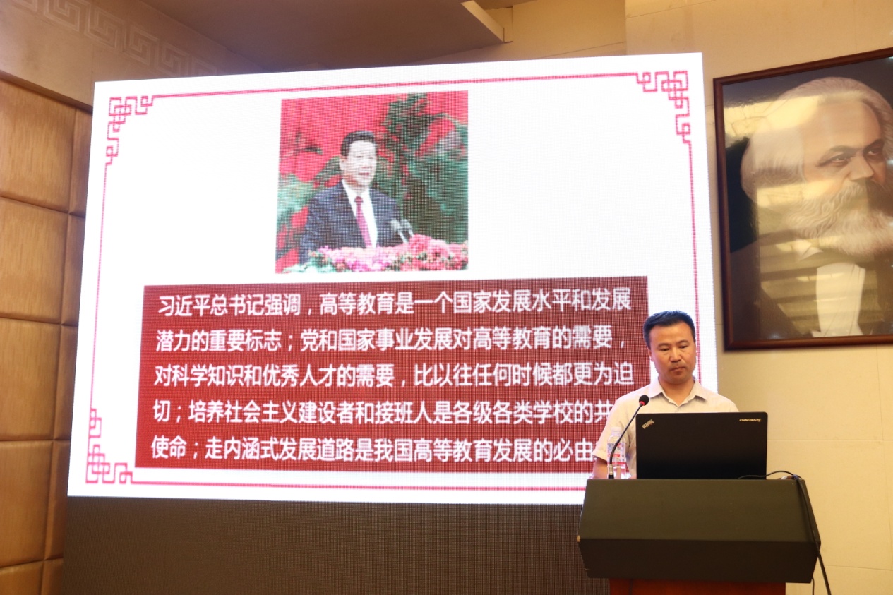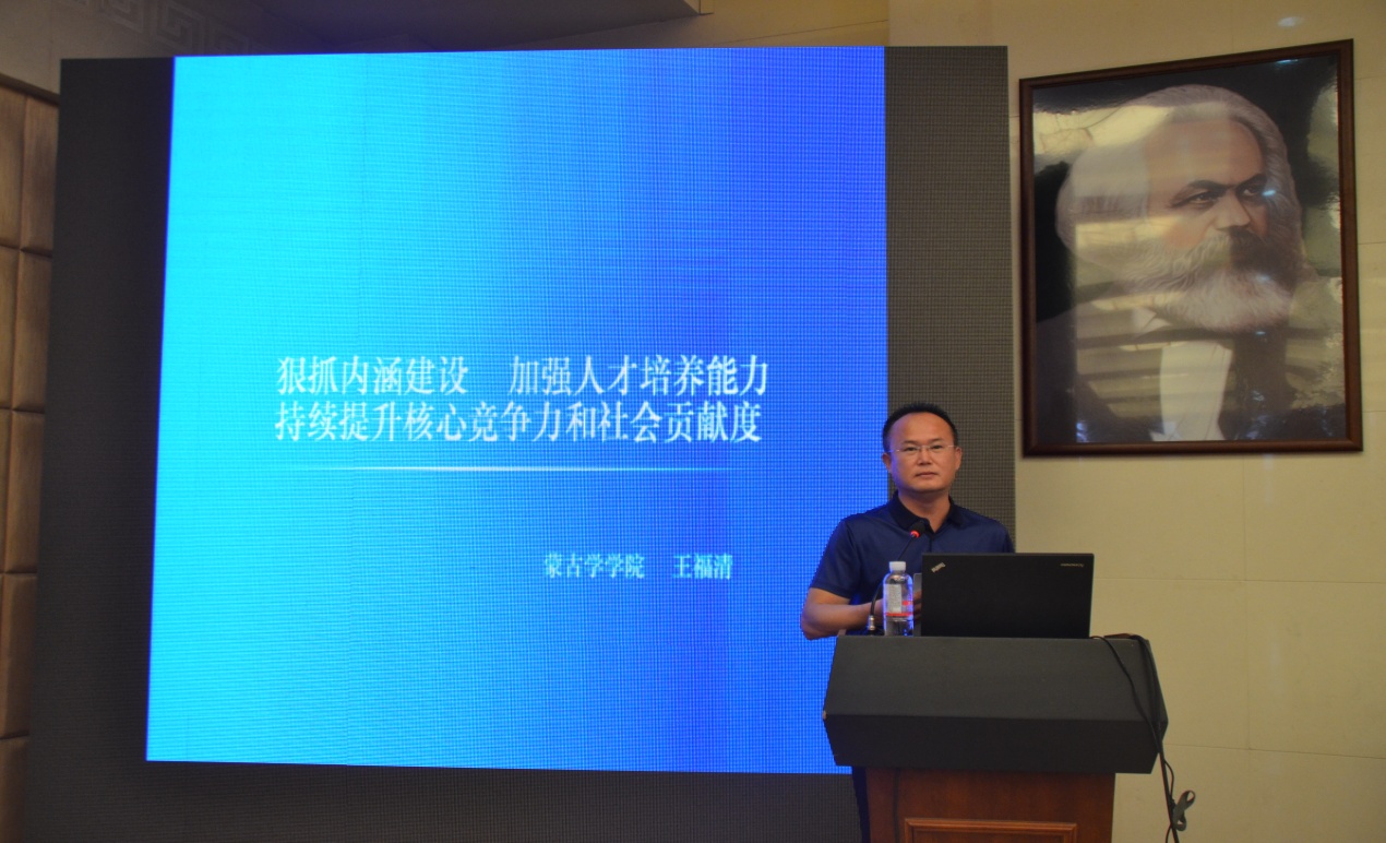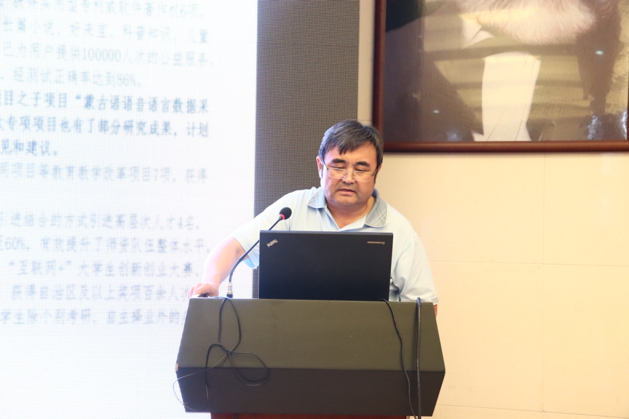 阿拉坦倉副校長作了題為《堅持以本為本 加強學科建設 推動科研創新 著力打造特色鮮明的一流本科教育 》的工作報告,全面總結學校本科教育、學科建設、科研工作取得的成績,分析和部署了下一階段工作的主要任務。報告指出要推進人才培養質量提升工程,堅持“以本為本”,大力加強內涵建設,著力推進轉型發展,大力培養高素質的應用型人才,努力打造民族人才的時代搖籃;推進學科建設提升工程,堅持以學科建設為龍頭,以碩士點建設為抓手,凝練特色優勢學科,優化學科布局,形成可持續發展的學科體系;推進創新能力提升工程,堅持以創新能力提升為主線,完善科研創新體制機制,加大科研創新力度,努力打造服務社會的重要基地、文化傳承創新的高地。