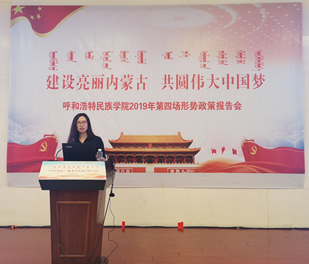 7月5日,我校2019年第四場形勢政策報告會、黨委中心組第七次擴大學習會及處級干部培訓班在學校學習講堂隆重舉行。本次報告會特邀請了“時代楷?!薄叭珖鴰煹聵吮薄叭珖鴥炐憬處煛贝筮B海事大學曲建武教授為師生作了以《給學生心靈埋下真善美的種子》為主題的報告。內蒙古黨委高校工委、自治區教育廳思想政治與學生工作處包革命同志應邀參加,校黨委副書記胡春梅,黨委委員、副校長阿拉坦倉,副校長納麗娜,黨委委員、紀委書記朝克出席會議,黨委委員、宣傳部部長王玉玲主持報告會。