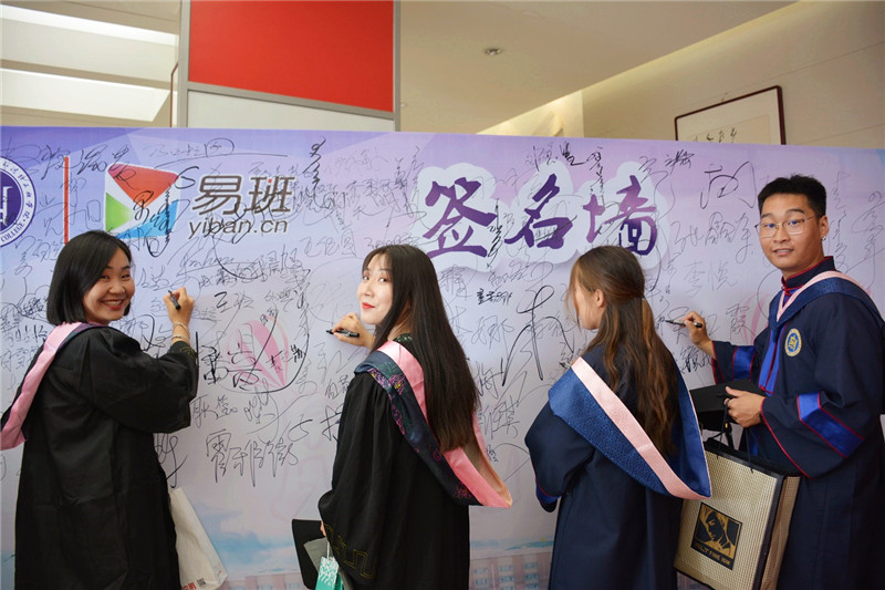 畢業生在簽名墻上簽字 |