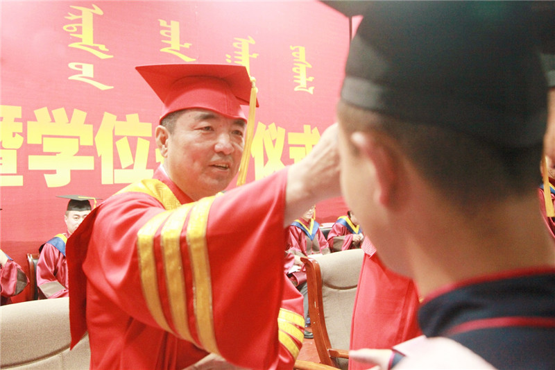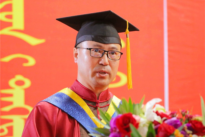 學校學士學位委員會主任、格日樂圖校長以五四運動100周年為主題,深情寄語2019屆全體畢業生。青年興則國興,青年強則國強,足球場上、考研中、實習崗位上我校學生均取得了優異的成果。在老一輩無產階級革命家烏蘭夫同志的親自倡導下,六十六年間我校取得了翻天覆地的變化。臨別之際,格日樂圖院長給予畢業生五點囑托,一要厚植愛國情懷,責任與擔當乃是愛國情懷的精髓所在。二要堅持奮斗精神,行百里者半九十,夢想成真,往往就是再堅持一下。三要錘煉厚德載物的品格,增厚美德,自強不息,容載萬物,踐行人與自然和諧共生。四要養成終身學習的習慣,主動地、不斷探索地,自我更新地,學以致用地優化知識,充實自己,腳踏實地。五要永葆一顆感恩的心,感恩是愛的延續,而愛才是一切生命的動力。講話最后,格日樂圖校長祝愿所有畢業生,不忘初心,志存高遠;砥礪前行,敢于擔當;永不氣餒,不負韶華,做新時代的追夢人,做新時代的弄潮兒。