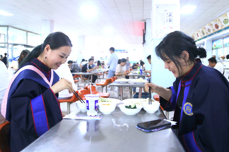典禮結束后,學生餐廳貼心的為畢業生準備了晚餐,師生同坐一桌,共同品嘗“畢業餃子”。