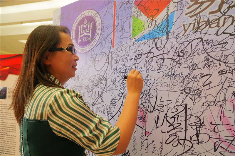教師代表在簽名墻上簽字 |