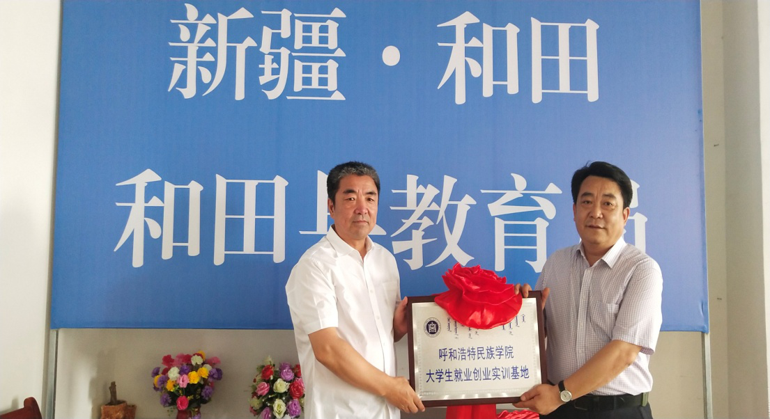 調(diào)研期間與和田縣領(lǐng)導(dǎo)和有關(guān)方面多次交流基礎(chǔ)上,雙方達成一致,建立“大學(xué)生就業(yè)創(chuàng)業(yè)實訓(xùn)基地”,并揭牌。