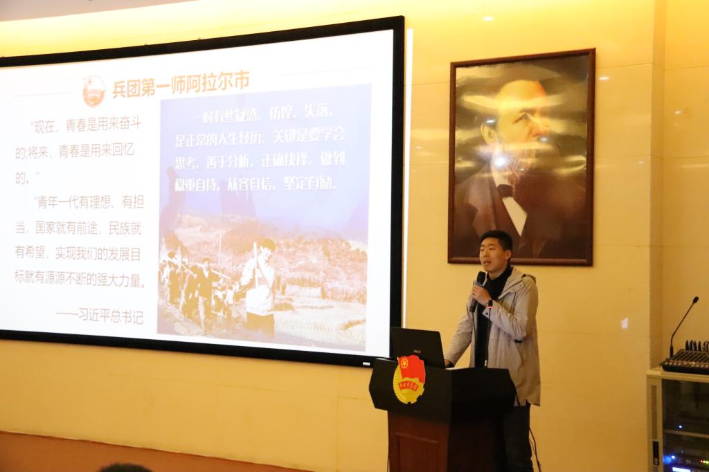 宣講會上,宣講團(tuán)成員播放了2019年兵團(tuán)西部計(jì)劃宣傳片。隨后,兵團(tuán)大學(xué)生志愿服務(wù)西部計(jì)劃優(yōu)秀志愿者代表韓自超、曹雅靜、張勐、李明輝分別為在場的學(xué)生們分享了他們志愿服務(wù)西部的心得體會。他們結(jié)合各自經(jīng)歷,講述了自己用青春的腳步丈量祖國西部,積極踐行習(xí)近平新時代中國特色社會主義思想,在平凡的服務(wù)崗位上綻放光彩的志愿服務(wù)故事。
