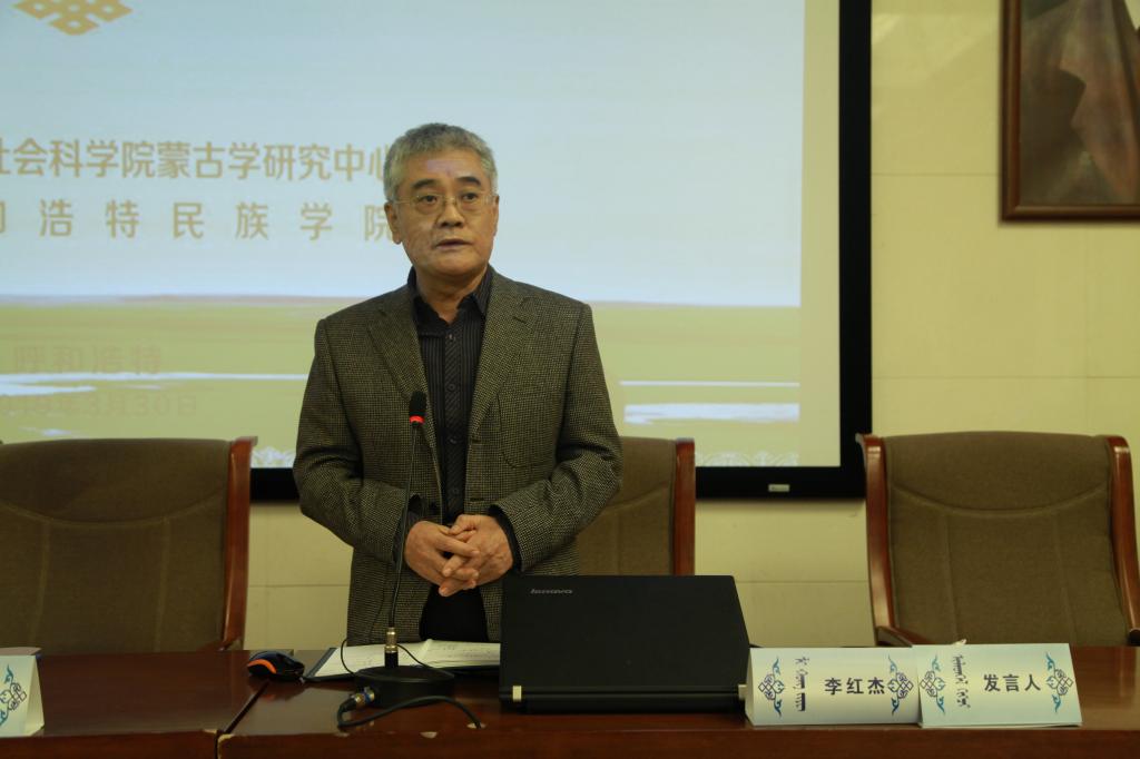 開(kāi)幕式上,格日樂(lè)圖校長(zhǎng)致歡迎辭。他表示,學(xué)校致力于民族優(yōu)秀傳統(tǒng)文化藝術(shù)的繼承和研究,大力弘揚(yáng)社會(huì)主義核心價(jià)值觀,推動(dòng)中華民族優(yōu)秀傳統(tǒng)文化的繁榮發(fā)展。學(xué)校此次和中國(guó)社會(huì)科學(xué)院蒙古學(xué)研究中心聯(lián)合主辦“民俗文化與一帶一路國(guó)家的民心相通”學(xué)術(shù)研討會(huì),既是一次課題研究的中期探討,也是一次研究成果展示,更是學(xué)校傳承優(yōu)秀文化、服務(wù)社會(huì)的有益探索。研討會(huì)的成功召開(kāi),必將對(duì)進(jìn)一步推動(dòng)民俗文化與“一帶一路”建設(shè)起到積極的作用,為學(xué)校科學(xué)研究帶來(lái)新氣象,也為來(lái)自各地的學(xué)者進(jìn)一步了解內(nèi)蒙古、了解蒙古族民俗風(fēng)情、了解呼和浩特民族學(xué)院搭建了平臺(tái)。