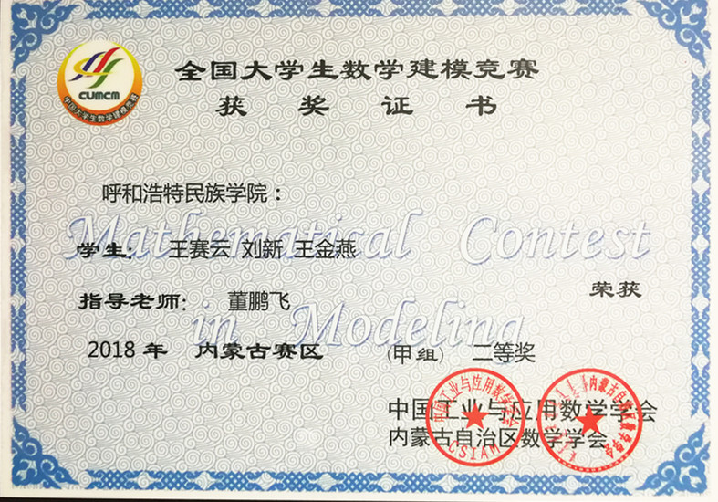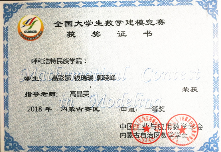 全國大學生數(shù)學建模競賽是由中國工業(yè)與應用數(shù)學學會和全國大學生數(shù)學建模組委會共同舉辦的目前全國規(guī)模最大的大學生競賽類活動。2018年9月,我校數(shù)學系首次組織學生隊伍參加2018年度全國大學生數(shù)學建模競賽,經(jīng)過充分準備、精心組織、激烈競爭,我校一支隊伍獲全國二等獎,一支隊伍獲內蒙古自治區(qū)賽區(qū)一等獎,兩支隊伍獲內蒙古自治區(qū)賽區(qū)二等獎,另有一支隊伍獲內蒙賽區(qū)成功參賽獎。