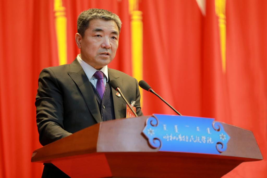 竇廳長代表高校工委發表講話。在講話中,竇廳長充分肯定和高度評價了我校過去五年的工作,他指出,過去五年來,在自治區黨委和政府的堅強領導下,呼和浩特民族學院黨委團結帶領全體黨員和師生員工,高舉中國特色社會主義偉大旗幟,認真學習貫徹習近平新時代中國特色社會主義思想和黨的十八大、十九大精神,全面貫徹黨的教育方針和民族政策,堅持社會主義辦學方向,緊緊圍繞立德樹人根本任務,落實創新、轉型、內涵、開放、和諧的發展理念,大力實施“特色立校、質量興校、人才強校”戰略,積極深化各項改革,不斷加強內涵建設,穩步推進轉型發展,著力優化發展環境條件,黨的建設得到全面加強,教育教學質量得到提升,在人才培養、科學研究、社會服務、文化傳承創新等方面都取得了顯著的成績,學校各項事業取得了較快發展。