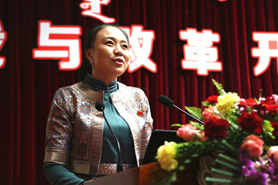 報(bào)告會(huì)在雄壯的國(guó)歌聲中開始。隨后,胡春梅副書記致辭。她首先代表學(xué)校對(duì)五位優(yōu)秀宣講嘉賓的到來(lái)表示熱烈歡迎,充分肯定我校在建校65年,尤其是改革開放40年間取得的長(zhǎng)足發(fā)展。學(xué)校黨委以習(xí)近平新時(shí)代中國(guó)特色社會(huì)主義思想為指導(dǎo),認(rèn)真學(xué)習(xí)貫徹教育大會(huì)精神、全國(guó)全區(qū)高校宣傳思想工作會(huì)議精神,堅(jiān)持社會(huì)主義辦學(xué)方向,堅(jiān)持以立德樹人根本任務(wù),全面加強(qiáng)黨的領(lǐng)導(dǎo),全面貫徹黨的教育方針,推動(dòng)學(xué)校各項(xiàng)事業(yè)在改革中砥礪前行,在創(chuàng)新中不斷發(fā)展。她希望,同學(xué)們珍惜這次難得的機(jī)會(huì),認(rèn)真聆聽宣講內(nèi)容,把這次宣講當(dāng)作每一位青年學(xué)生共同慶祝改革開放40年的美好記憶,當(dāng)作勵(lì)志把改革開放的偉大事業(yè)推向前進(jìn)的共同期許,把個(gè)人的前途命運(yùn)與祖國(guó)的改革開放偉大事業(yè)緊密聯(lián)系起來(lái),為實(shí)現(xiàn)中華民族偉大復(fù)興的中國(guó)夢(mèng)而不懈奮斗。