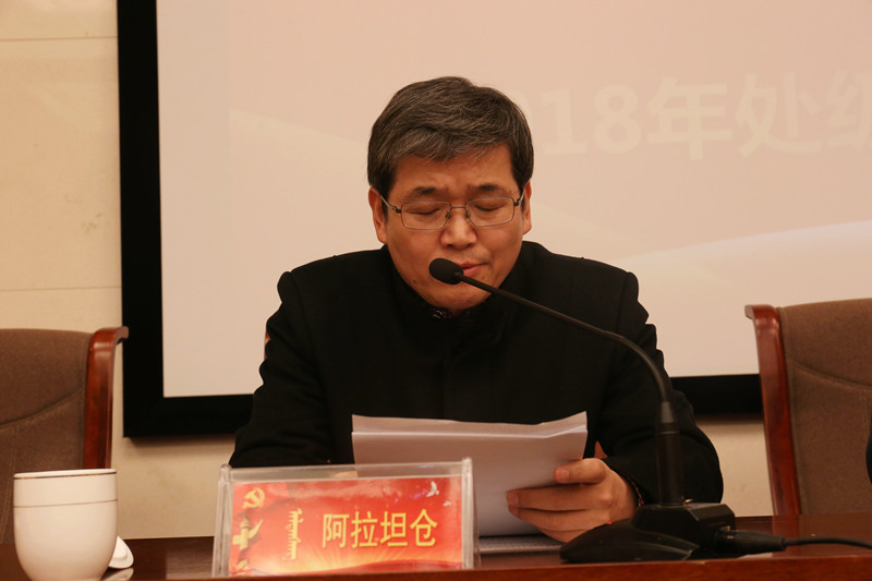 會上,阿拉坦倉副校長宣讀了自治區機構編制委員會《關于呼和浩特民族學院調整內設機構及職數的批復》,并對我校內設機構及處級崗位設置情況作了說明。