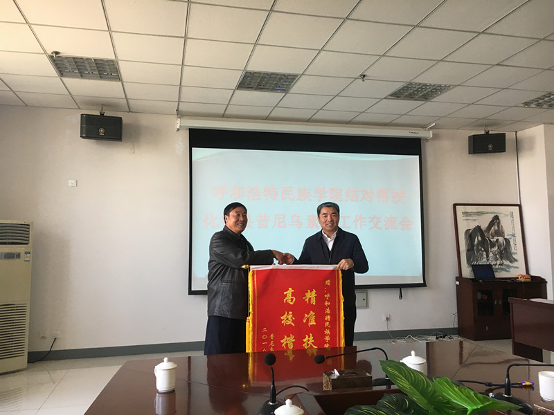 格日樂(lè)圖院長(zhǎng)代表學(xué)校對(duì)昔尼烏素村一行來(lái)校表示熱烈歡迎,對(duì)該村近年來(lái)脫貧攻堅(jiān)所取得的成績(jī)表示祝賀。他認(rèn)為,做好扶貧點(diǎn)的幫扶工作,是自治區(qū)黨委、政府給學(xué)校的一項(xiàng)政治任務(wù),學(xué)校黨政對(duì)此高度重視,在教育扶貧、文化扶貧、產(chǎn)業(yè)扶貧、健康扶貧、扶智扶志等方面做了大量富有成效的工作,得到了當(dāng)?shù)乩习傩盏恼J(rèn)可和贊許。下一步,學(xué)校將認(rèn)真貫徹落實(shí)中央和自治區(qū)要求,協(xié)調(diào)爭(zhēng)取上級(jí)有關(guān)項(xiàng)目和政策,進(jìn)一步調(diào)動(dòng)廣大師生的積極性,加大幫扶力度,支持昔尼烏素村順利完成攻堅(jiān)任務(wù)。