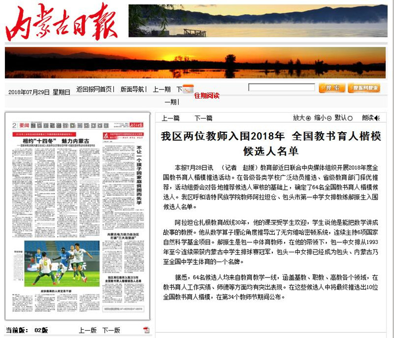 此次評選活動在中國教育新聞網廣泛開展,《內蒙古日報》對我區入圍的兩名教師進行了宣傳報道。據悉,此次評選最終將在64名候選人中推選出10位全國教書育人楷模,并在第34個教師節期間向社會公布。