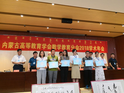 兩位領(lǐng)導(dǎo)致辭之后,分會秘書長、我校數(shù)學(xué)系主任額爾敦布和教授公布第四屆(2018)全國高校數(shù)學(xué)微課設(shè)計競賽內(nèi)蒙古分賽區(qū)比賽結(jié)果,全區(qū)高校30名教師分別獲得內(nèi)蒙古分賽區(qū)比賽特等獎、一等獎和二等獎,并由與會領(lǐng)導(dǎo)為獲獎教師頒發(fā)榮譽(yù)證書。我校數(shù)學(xué)系青梅博士、塔娜兩位老師提交的作品“阿貝爾定理”和“全微分的定義”分別榮獲內(nèi)蒙古分賽區(qū)一、二等獎。會上還公布了擬入選內(nèi)蒙古自治區(qū)高等學(xué)校“面向21世紀(jì)數(shù)學(xué)類蒙文規(guī)劃系列教材”的教材名稱。