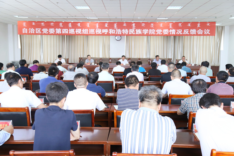 根據自治區黨委巡視工作領導小組安排,2018年7月3日,自治區黨委第四巡視組向呼和浩特民族學院黨委反饋巡視情況。自治區黨委巡視工作領導小組辦公室副主任周蘇軍向呼和浩特民族學院黨委書記孫國權傳達了自治區黨委書記李紀恒同志在書記專題會議聽取十屆黨委第三輪巡視情況匯報時的講話精神,自治區黨委第四巡視組組長張成林代表巡視組分別向呼和浩特民族學院黨委書記和領導班子反饋了巡視情況,呼和浩特民族學院黨委書記孫國權就做好巡視整改工作作了表態。