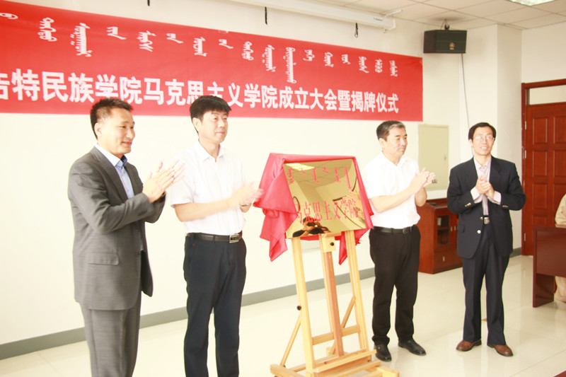 黨委書記孫國權(quán)、黨委副書記、校長格日樂圖共同為馬克思主義學院揭牌