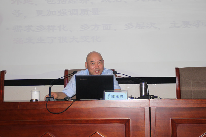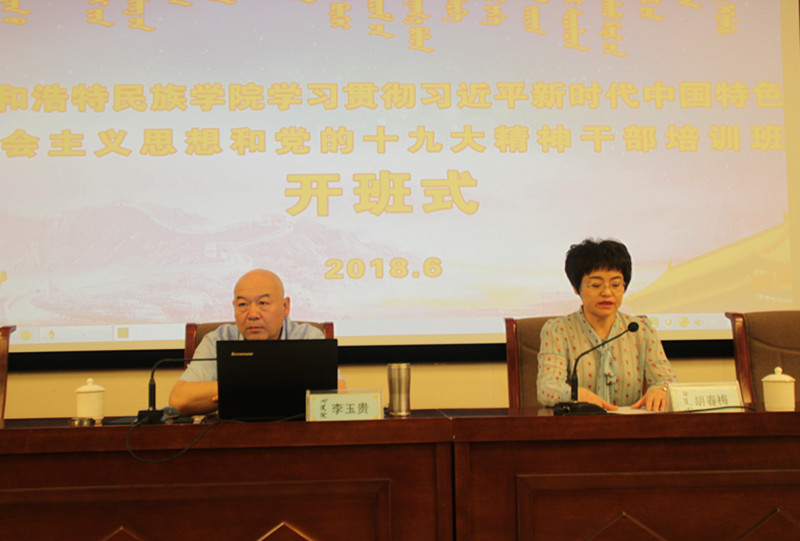 為深入學習貫徹習近平新時代中國特色社會主義思想和黨的十九大精神,推動我校轉型發展和內涵建設,我校于6月14日下午在圖書館一樓報告廳舉辦了學習貫徹習近平新時代中國特色社會主義思想和黨的十九大精神干部培訓班開班式及其第一場講座,內蒙古黨校政治學教研部主任李玉貴教授應邀到我校開展講座。學校黨委書記孫國權出席了開班式,副書記胡春梅主持開班式。我校全體處級干部和科級干部聆聽了講座。