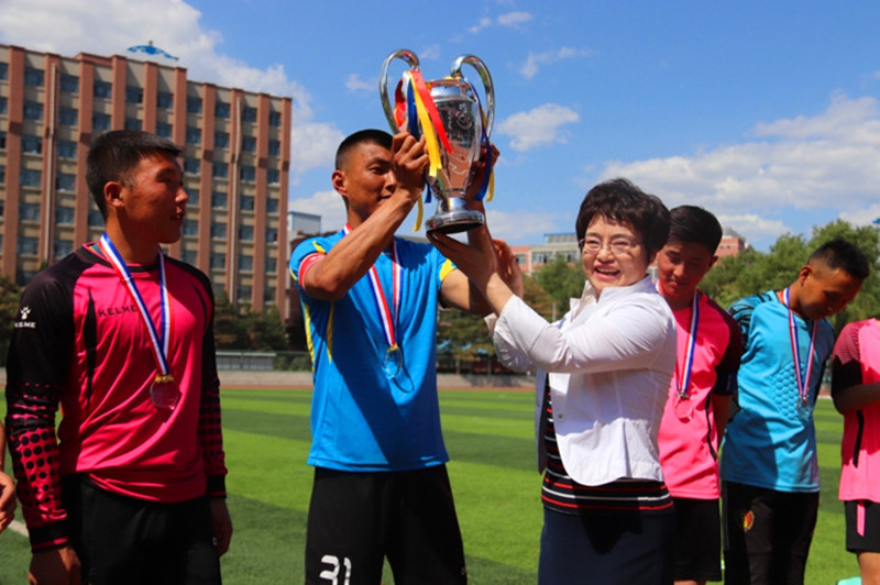 由校團委主辦、體育系承辦的我校2017—2018年“白馬杯”足球聯賽于5月30日中午在校體育場落下了帷幕,校黨委副書記胡春梅觀看了本場決賽并為決賽開球。 本次聯賽從2017年10月開始至今,經過兩學期的精彩比拼,管理系在決賽中擊敗了經濟系獲得冠軍,經濟系獲得亞軍,蒙古語言文學系獲得季軍。最后,胡春梅副書記為冠軍球隊頒發獎杯及獎牌。 通過本次聯賽,增強大學生身體素質,豐富大學生課余生活,活躍校園文化,促進學校民族團結教育。(團委供稿)