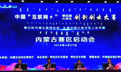 第四屆中國‘互聯網+’大學生創新創業大賽內蒙古賽區啟動會于4月27日,在呼倫貝爾學院召開。自治區43所高校主管校領導,教務、就業等相關部門負責同志,各高校師生代表350余人參加。我校納麗娜副院長、就業指導中心娜仁其木格副主任參加了啟動儀式,創業學生代表高宇江、邰麗麗參加了項目展示。