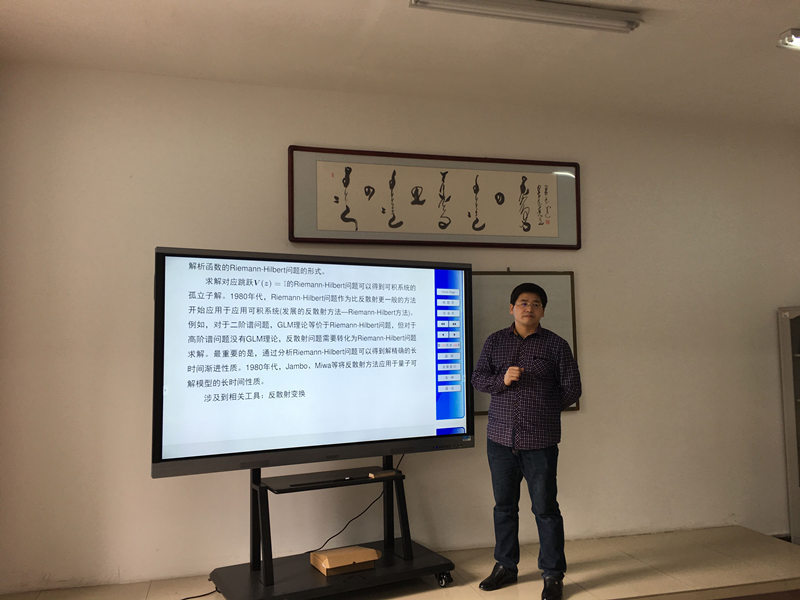 應我校數(shù)學系邀請,遼寧省“百千萬人才工程”百人層次人選、遼寧省基礎數(shù)學優(yōu)勢特色重點學科帶頭人、渤海大學基礎數(shù)學專業(yè)碩士生導師張盛教授于1月8日在數(shù)學系會議室作了題為《非線性可積系統(tǒng)的解析方法》學術(shù)報告。報告會前后,校領導孫國權(quán)書記、格日樂圖院長和阿拉坦倉副院長分別接見張盛教授,對張教授來我校作學術(shù)交流表示歡迎。數(shù)學系主任額爾敦布和教授主持了報告會,數(shù)學系全體教師及內(nèi)蒙古工業(yè)大學的部分研究生參加。副院長阿拉坦倉教授出席本次報告會。