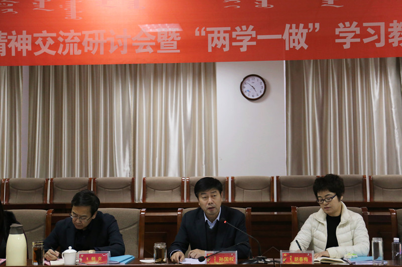 12月26日下午,學(xué)校黨委在綜合樓12樓會議室召開了學(xué)習(xí)貫徹十九大精神交流研討會暨“兩學(xué)一做”學(xué)習(xí)教育常態(tài)化制度化推進(jìn)會。校黨委書記孫國權(quán),黨委副書記胡春梅,紀(jì)委書記朝克,黨委委員、組織統(tǒng)戰(zhàn)部部長包君,黨委委員、紀(jì)委副書記、監(jiān)審處處長王玉玲出席會議,黨群部門副處級以上干部,黨總支書記、副書記,黨支部書記共78人參加會議。會議由黨委書記孫國權(quán)主持。