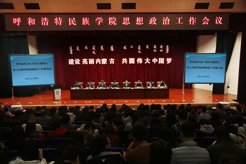 為深入學習宣傳貫徹黨的十九大精神,全面貫徹落實全國全區(qū)高校思想政治工作會議精神,進一步加強和改進新形勢下學校思想政治工作,12月7日下午,學校在圖書館二樓報告廳召開思想政治工作會議。學校領導、副處級以上干部、兩課教師、思政工作人員、老干部代表、教師代表和學生代表共750人參加會議,會議由黨委副書記、院長格日樂圖主持。