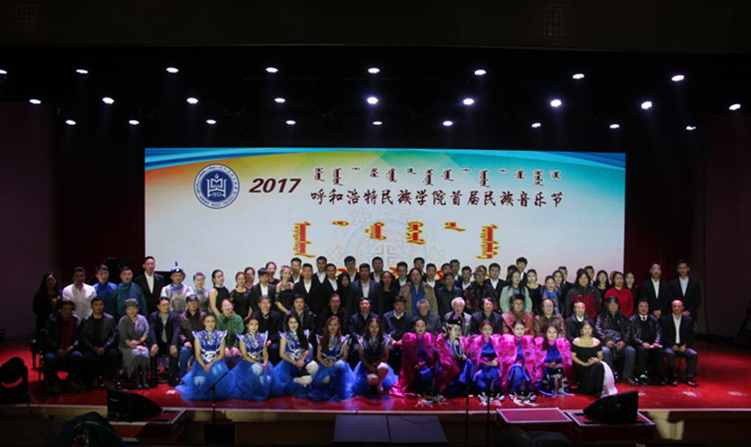 為慶祝黨的十九大勝利召開和內蒙古自治區(qū)成立70華誕,“呼和浩特民族學院2017首屆民族音樂節(jié)”于11月20日在校圖書館二樓報告廳盛大開幕。校黨委書記孫國權、副院長阿拉坦倉出席開幕式,學校各職能部門負責人、區(qū)內外音樂界知名藝術家以及我校各系師生700余人參加。開幕式由音樂系主任齊占柱主持。