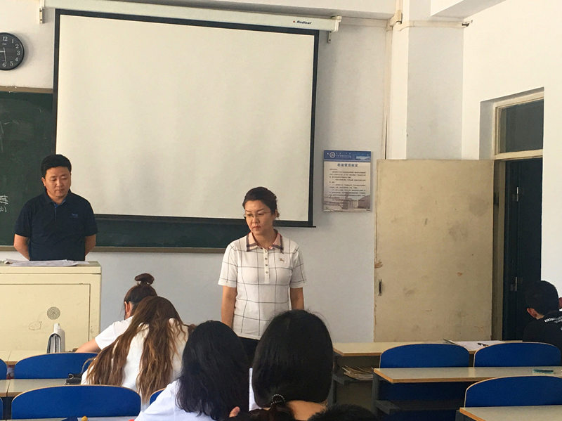7月7日上午,納麗娜副院長在學生處工作人員的陪同下,深入2016-2017學年第二學期期末考試現場巡視檢查。 納麗娜副院長向考務工作人員詳細了解了考試班級、考試科目、考試內容以及考試形式等情況,并進行了現場巡視。納院長要求,全體監考老師要自覺遵守學校規定,認真做好監考工作;同學們要自覺遵守考試紀律,端正考試態度,確保期末考試工作的順利進行。 本次學校領導深入考場檢查和指導考試工作,進一步加大了考風考紀建設力度,以考風促學風,全面提高我校的教育教學質量。(學生工作處供稿)
