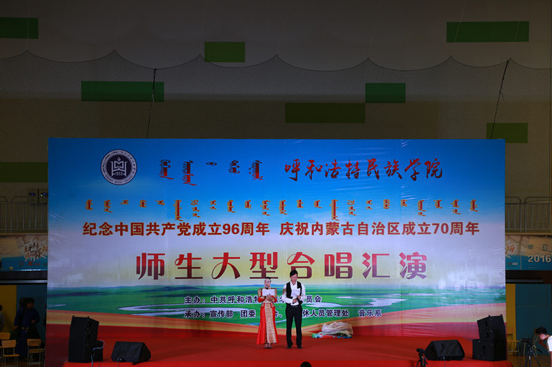 此次師生大型合唱匯演活動,以歌聲紀(jì)念中國共產(chǎn)黨成立96周年光輝歷史,用實際行動推進學(xué)校“兩學(xué)一做”學(xué)習(xí)教育常態(tài)化制度化工作,有效增強了全校師生的凝聚力和向心力。同時,本次活動是學(xué)校慶祝內(nèi)蒙古自治區(qū)成立70周年的重要活動,學(xué)校上至領(lǐng)導(dǎo),下至各民族師生,高度重視,積極參與,經(jīng)過前期的排練、篩選等環(huán)節(jié),最終為全校師生和社會群眾呈現(xiàn)了一場視覺和聽覺的盛宴。