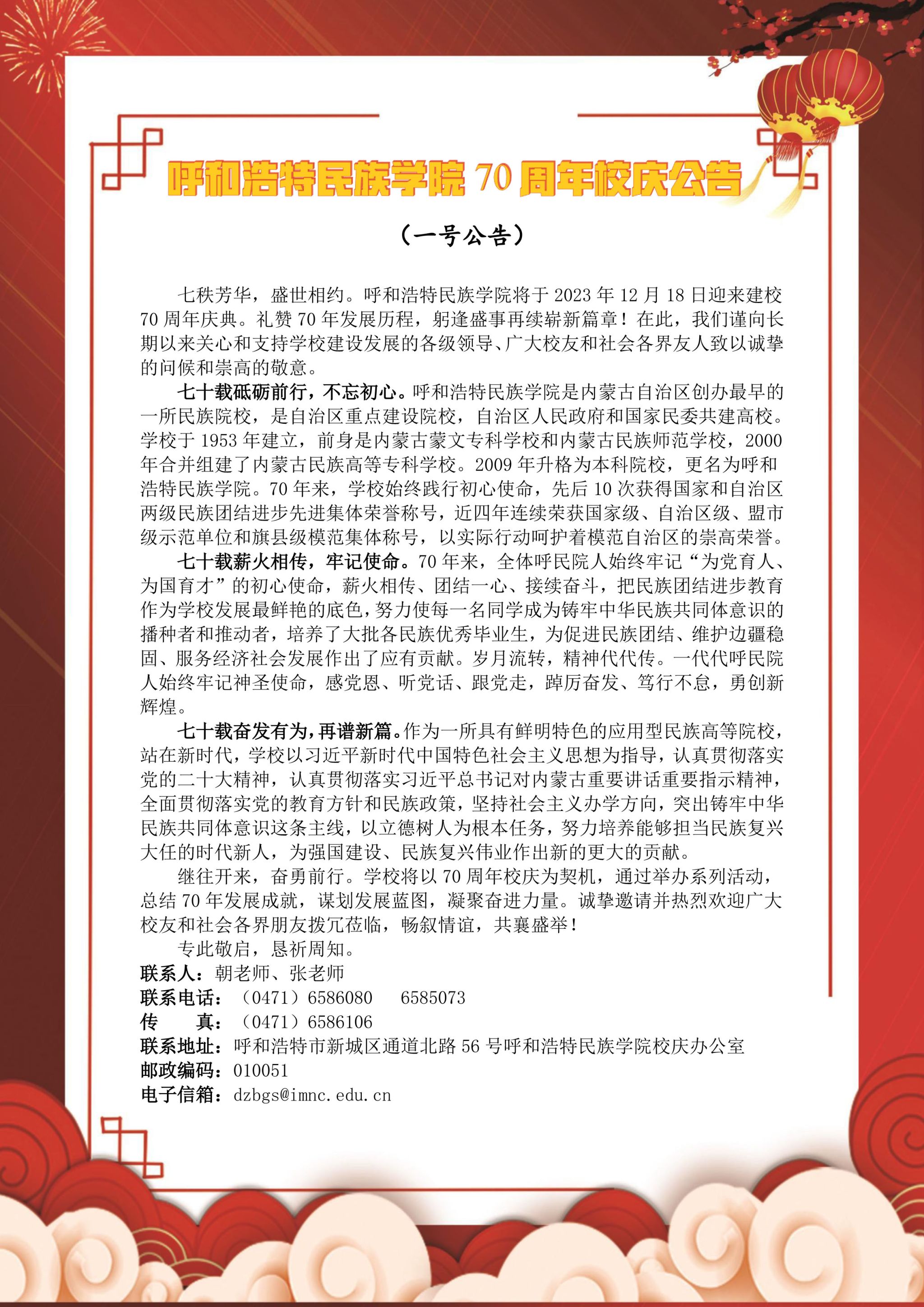 【七秩芳華,盛世相約】呼和浩特民族學(xué)院70周年校慶公告