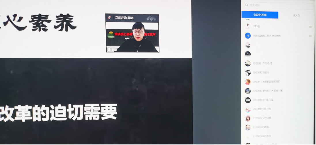 12月16日晚,美術學院以騰訊會議形式線上舉行了《中學名家講壇》2022年第一期講座。本次講座由塔娜副院長主持,邀請內蒙古師范大學附屬中學高級教師郭璇老師主講,美術學專業300余名師生聽講。