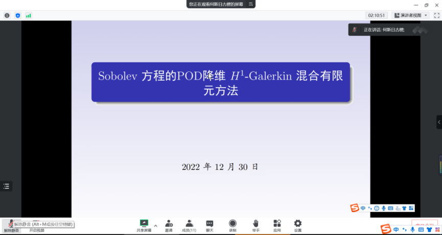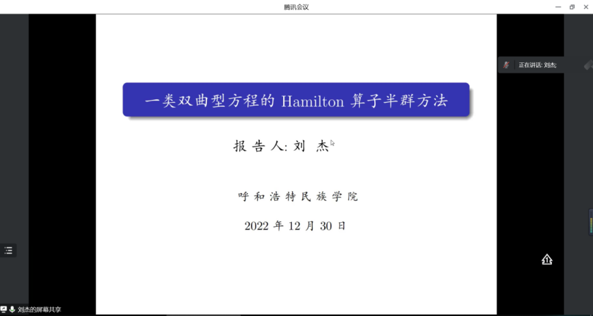 2022年12月30日,我校全國(guó)高校黃大年式教師團(tuán)隊(duì)線上舉辦了2022年度教學(xué)科研論壇。團(tuán)隊(duì)特別邀請(qǐng)?zhí)K州大學(xué)博士生導(dǎo)師何吉?dú)g教授和內(nèi)蒙古師范大學(xué)博士生導(dǎo)師套格圖桑教授作專題報(bào)告,教務(wù)處處長(zhǎng)額爾敦布和教授、數(shù)學(xué)與大數(shù)據(jù)學(xué)院副書記郝喜鳳、副院長(zhǎng)額爾敦其其格和團(tuán)隊(duì)全體成員、研究生及高年級(jí)本科生共120余人參加本次論壇。