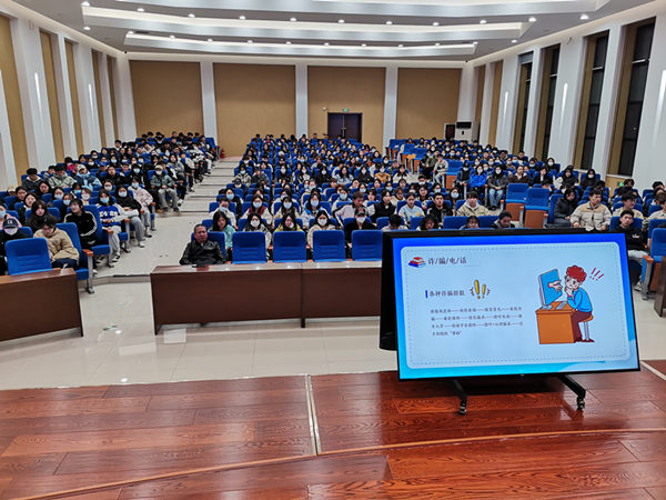 多麗娜警官講解了近期我市高校發(fā)生的多起刷單返利電信詐騙案例,如何防范電信網(wǎng)絡(luò)詐騙、電話詐騙、校園網(wǎng)貸等方面的危害和防范措施。郭明君副處長(zhǎng)通過(guò)實(shí)際案例講解了國(guó)家安全、交通安全、消防安全等方面的安全知識(shí),并結(jié)合校園周邊環(huán)境的治安狀況,強(qiáng)調(diào)了安全的重要性,希望同學(xué)們從自身做起,共同維護(hù)校園安全環(huán)境。最后引導(dǎo)同學(xué)們下載了“國(guó)家防詐中心APP”。