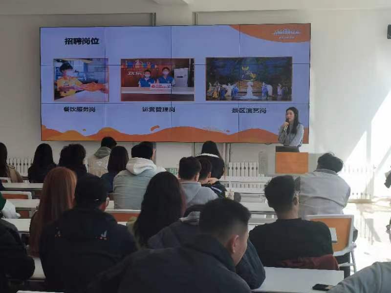 招聘會上,北京歡樂谷華僑城集團人力資源部招聘主管王少輝介紹了本集團公司的基本情況,公司專員趙雪晴講解公司運營情況以及薪資待遇情況等,在招聘會上有20余名同學遞交求職簡介并簽訂意向協議。