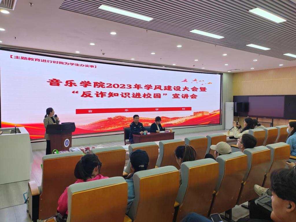 5月11日,音樂學院在圖書館一樓報告廳召開了“反詐知識進校園”宣講會。會議特邀請呼和浩特市公安局反詐中心三級警長張巍警官給同學們講授反詐知識。學院黨總支書記格日樂、全體輔導員、2021和2022級全體同學參加宣講會。