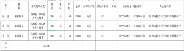 二、項目名稱:呼和浩特民族學院防疫應急物資(1000套被褥)項目