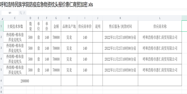 二、項目名稱:呼和浩特民族學院防疫應急物資(2000套被褥)項目