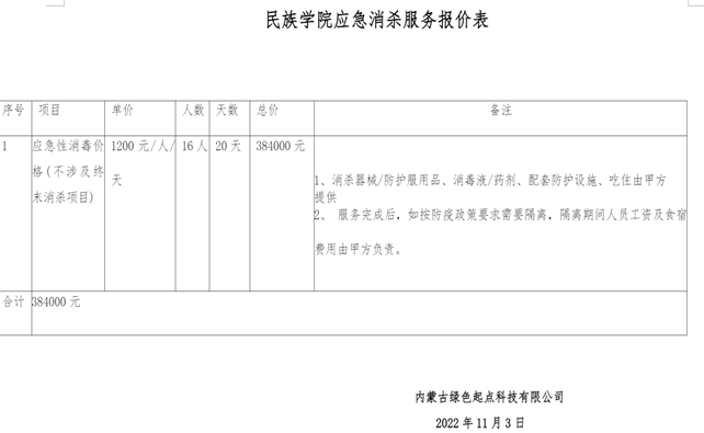 二、項目名稱:呼和浩特民族學院防疫應急物資(消殺服務)項目