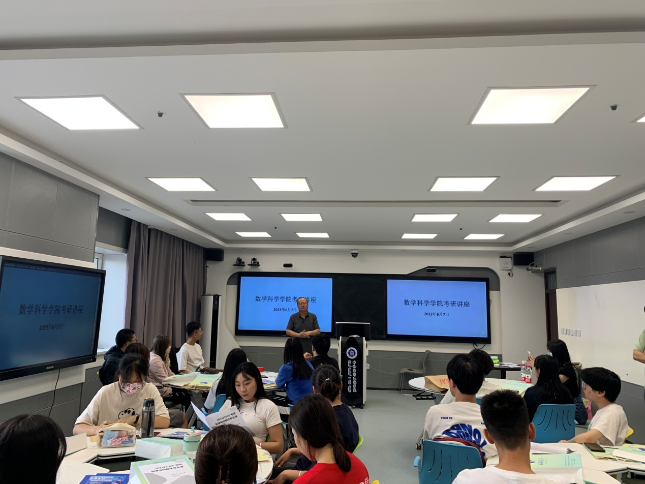郝建軍老師圍繞考研目的、院校選擇、備考策略等方面做詳細的講解,尤其著重介紹了專業課程《數學分析》和《常微分方程》的學習方法。他建議同學們制定合理的計劃,有效利用網絡資源,勤勉學習、努力進取、持之以恒。郝老師結合相關數據資料對同學們的疑問進行耐心細致的解答。