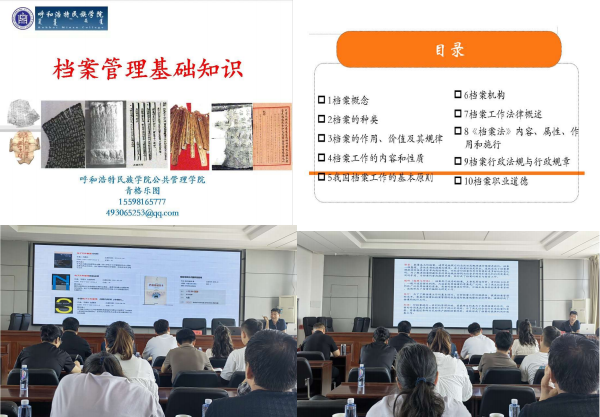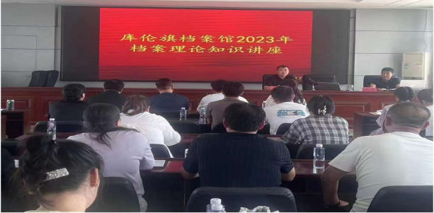 學校派駐庫倫旗先進蘇木奈林稿嘎查第一書記青格樂圖老師應庫倫旗檔案館于鳳來館長的邀請,于7月17日在庫倫旗水利局為旗檔案館和旗委辦、統戰部、人事局、庫倫鎮等相關部門單位 30 余名檔案管理人員,開展《檔案管理基礎知識》專題講座。
