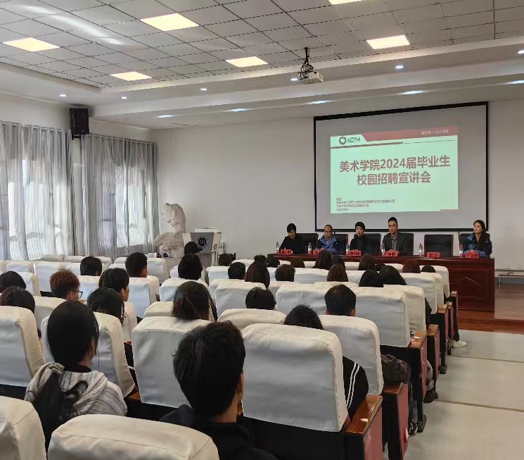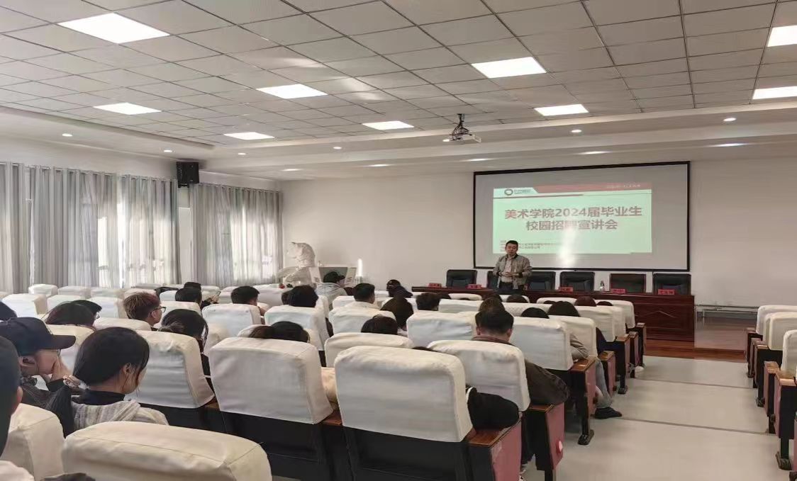 為不斷增強畢業生就業意識,有效推動就業工作,10月30日下午美術學院在美術樓階梯教室召開了2024屆畢業生校園招聘宣講會。美術學院黨總支書記吳利春、副處級組織員吉木斯、校企合作教學部郭強、就業部王永清以及2020級設計專業在校畢業生80余人參加了招聘宣講會。