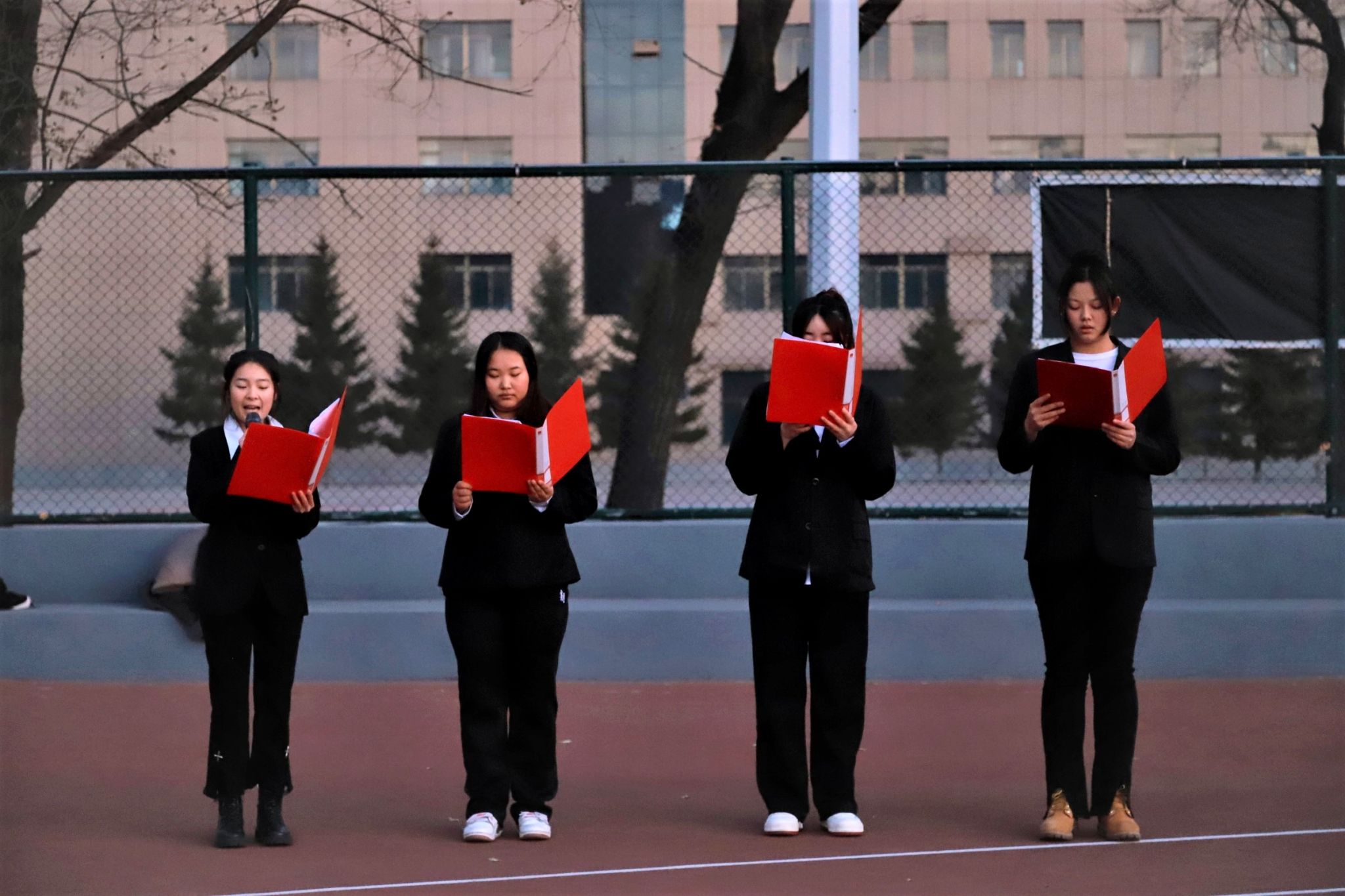 早7時,升國旗儀式正式開始。英姿颯爽的國旗護衛隊邁著鏗鏘有力的步伐,護衛國旗入場。伴隨著莊嚴的國歌聲,五星紅旗迎著朝陽冉冉升起,鮮艷奪目。師生肅立,向國旗行注目禮,齊唱國歌,向國旗致以最崇高的敬意。隨后,蘭明玉、黃家琦、鄭璐璐、陳丹丹等四名同學以“厚植愛國情懷,凝聚奮進力量”為題作國旗下的演講,號召廣大青年學生培育高尚品格,在青春奮斗的人生路上,敢闖敢干、勇毅前行,在實現中華民族偉大復興的新征程上踔厲奮發。
