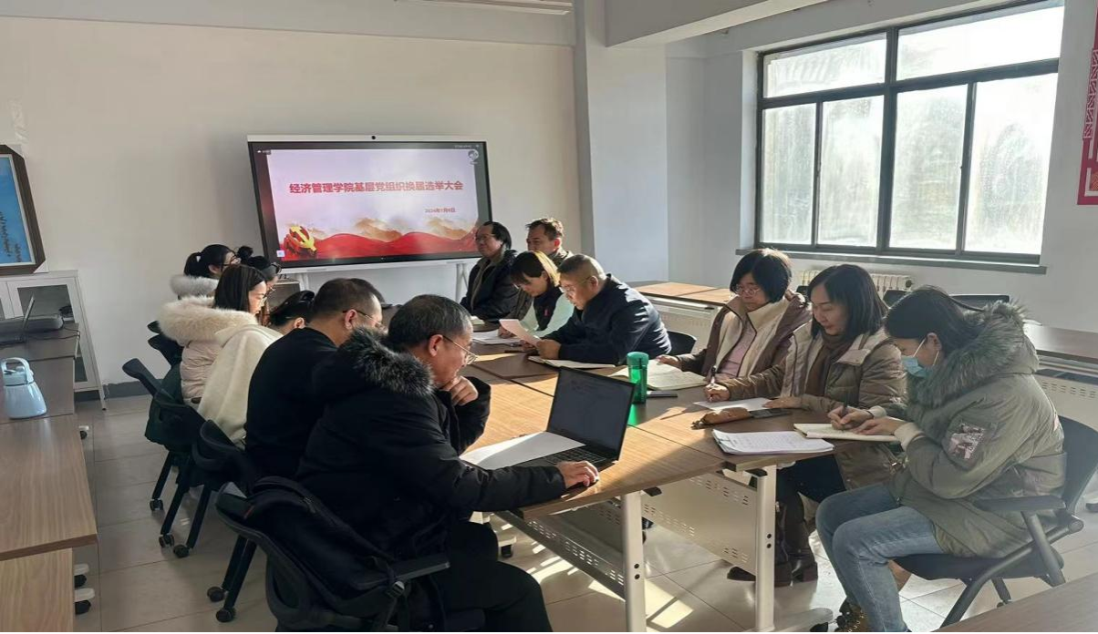 學院黨總支書記周雙喜代表上一屆黨總支做了工作報告,全體黨員審議通過了工作報告。會議選舉產生了經濟管理學院黨總支委員會委員,并經新一屆委員會第一次全體會議選舉,周雙喜當選黨總支書記,李云當選黨總支副書記。
