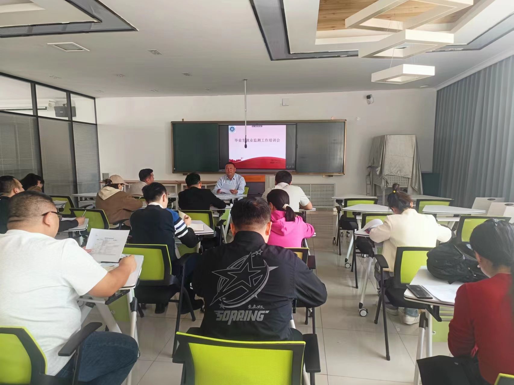 包倉從就業監測工作的重要性、準確把握就業監測指標、規范做好畢業去向登記、以及基礎數據和就業數據填報存在的問題等幾方面做了系統培訓,并對做好學校畢業生就業監測工作提出了三點要求:一是要加大畢業生自主登記工作力度。班主任、輔導員要指導畢業生按要求登記畢業去向信息同時引導畢業生開展自主網簽。二是要健全“一對一”幫扶責任制。重點關注脫貧家庭、低保家庭、零就業家庭、殘疾等困難高校畢業生,建立幫扶工作臺賬,確保每一個困難學生都得到有效幫助。三是要加強就業指導,提高就業工作成效。要讓學生準確認識當前就業形勢,切實增強做好就業工作的緊迫感。
