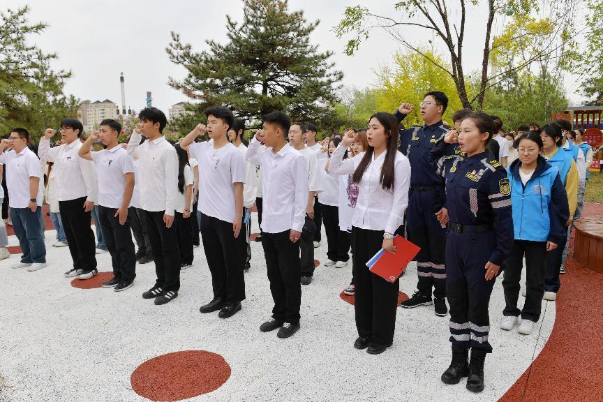 為深入學習貫徹習近平新時代中國特色社會主義思想,貫徹落實習近平總書記關于青年工作的重要論述,激發(fā)廣大團員和青年紀念和傳承五四精神,勇?lián)啻菏姑幾鰰r代新人,4月28日上午,呼和浩特民族學院美術學院團總支與回民區(qū)團委、內(nèi)蒙古北疆志愿服務聯(lián)合會、內(nèi)蒙古師范大學青年政治學院、內(nèi)蒙古建筑職業(yè)學院等四家單位在回民區(qū)“紅石榴”志愿服務主題公園聯(lián)合舉辦了“青春奮進新時代 挺膺擔當向未來”2024年集中規(guī)范性入團儀式。美術學院團總支書記魏偉、輔導員吳豐林帶領2024年新入團團員和“紅石榴”志愿服務隊成員參加活動。