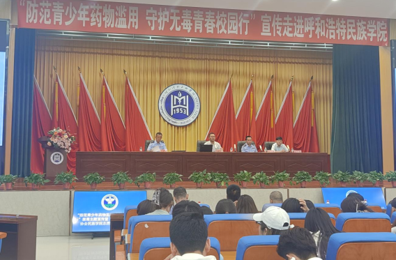 為認(rèn)真貫徹落實(shí)自治區(qū)教育廳《關(guān)于做好2024年全區(qū)教育系統(tǒng)毒品預(yù)防教育工作的通知》精神。6月11日,學(xué)校聯(lián)合市公安局禁毒辦在學(xué)術(shù)報(bào)告廳開展了“防范青年藥物濫用,守護(hù)無毒青春校園行”主題宣傳活動(dòng)。呼和浩特市禁毒委員會(huì)辦公室副主任、市公安局禁毒支隊(duì)副支隊(duì)長饒樹新,新城區(qū)公安分局禁毒大隊(duì)中隊(duì)長劉永達(dá),呼和浩特市禁毒公益協(xié)會(huì)會(huì)長王凱鵬出席,活動(dòng)由學(xué)校保衛(wèi)處副處長郭明君主持。
